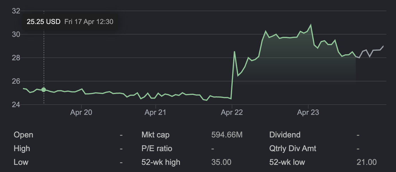 そして4月22日、RVIがOpenAIを組み込むことが正式発表されました。投資額は7,500万ドル。この発表を受けてRVI自体は10%超の上昇となっています。